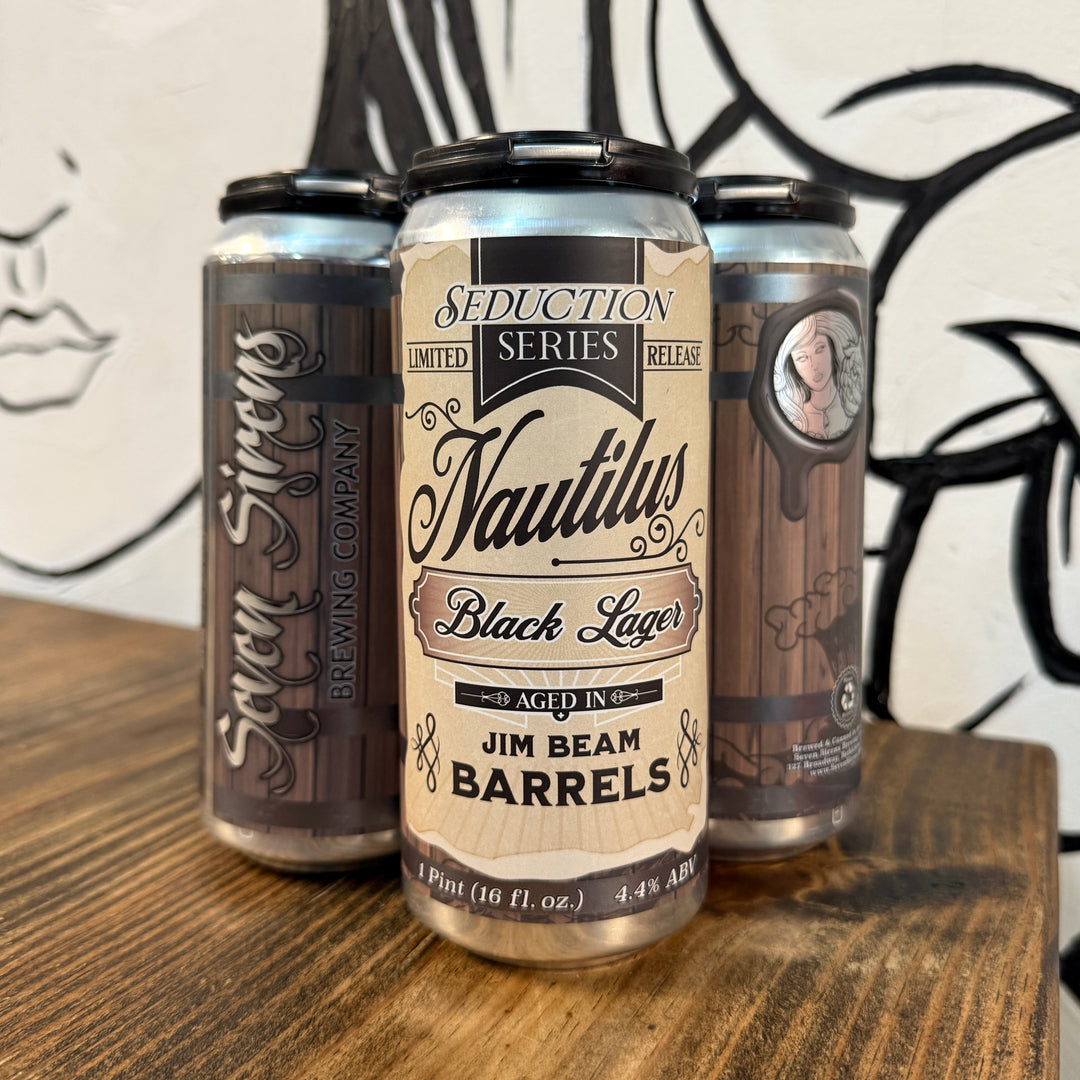 Nautilus, black lager aged in Jim Beam barrels offers a smooth, dark complexity with a light body that’s easy to enjoy. Subtle roasted malt flavors are balanced by hints of vanilla, caramel, and oak from the barrel-aging process. The Jim Beam influence lends a mellow bourbon warmth, complementing the lager's clean, crisp finish. Perfect for sipping without the weight of higher ABV stouts or porters, this beer delivers depth and drinkability in every sip.